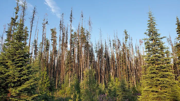 - Minimal Tree Cover: The tree cover is minimal due to a past fire.