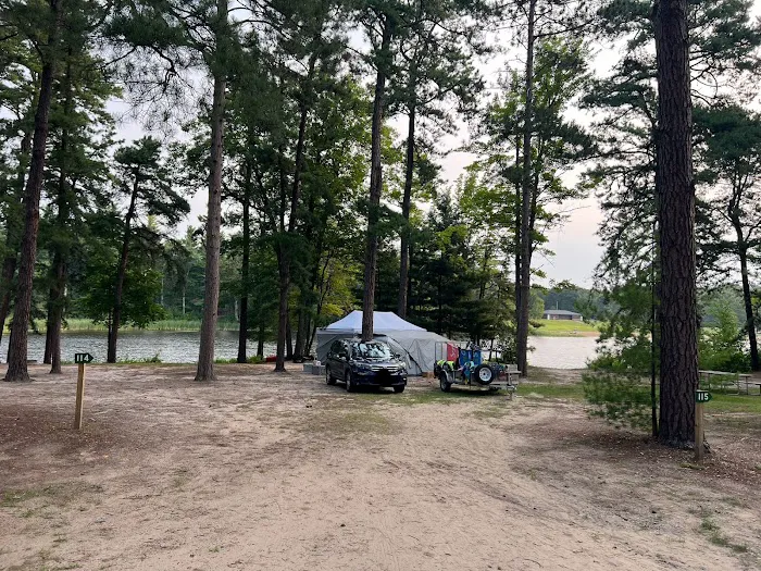 Before I get any further, the red squirrels are a nightmare! We are always prepared for bears, but these squirrels are another story! They ate through a storage container in less than 6 hours and messed with everything inside. Anything that smells like food they are going to mess with! Now, for the rest of my review. We had site 114 and it was very big and on the water. Sites 113 and 115 are also decent size. All 3 of these have water access points. From 114 you can see the beach and a pretty view of the water and park area. The beach is pretty nice for a pond. The bathrooms are cleaned daily. Remember to bring cash if you have children because an ice cream truck comes through the camp ground. Overall, one of the best state campgrounds I have been to.