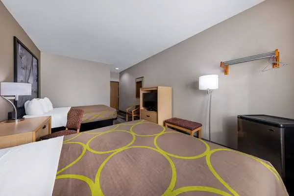 Probably one of the nicest Super 8 locations I've ever seen. Location, well lit large parking lot, nice corridors with good lighting, ADA compliant entries, room design, modern amenities, great bathroom with amazing shower experience and a sweet climate control. Bed.. very nice, lots of pillows with soft linens. Great TV and large fridge. Handy desk with rolling chair. Perfect lighting. Safety latches on the door. Great prices on single room rates. Awesome front desk staff. Close to Interstate 10 on Dome Rock Road and very close to Love's Travel Plaza with food options and other eateries in Quartzsite. I would definitely recommend staying here.